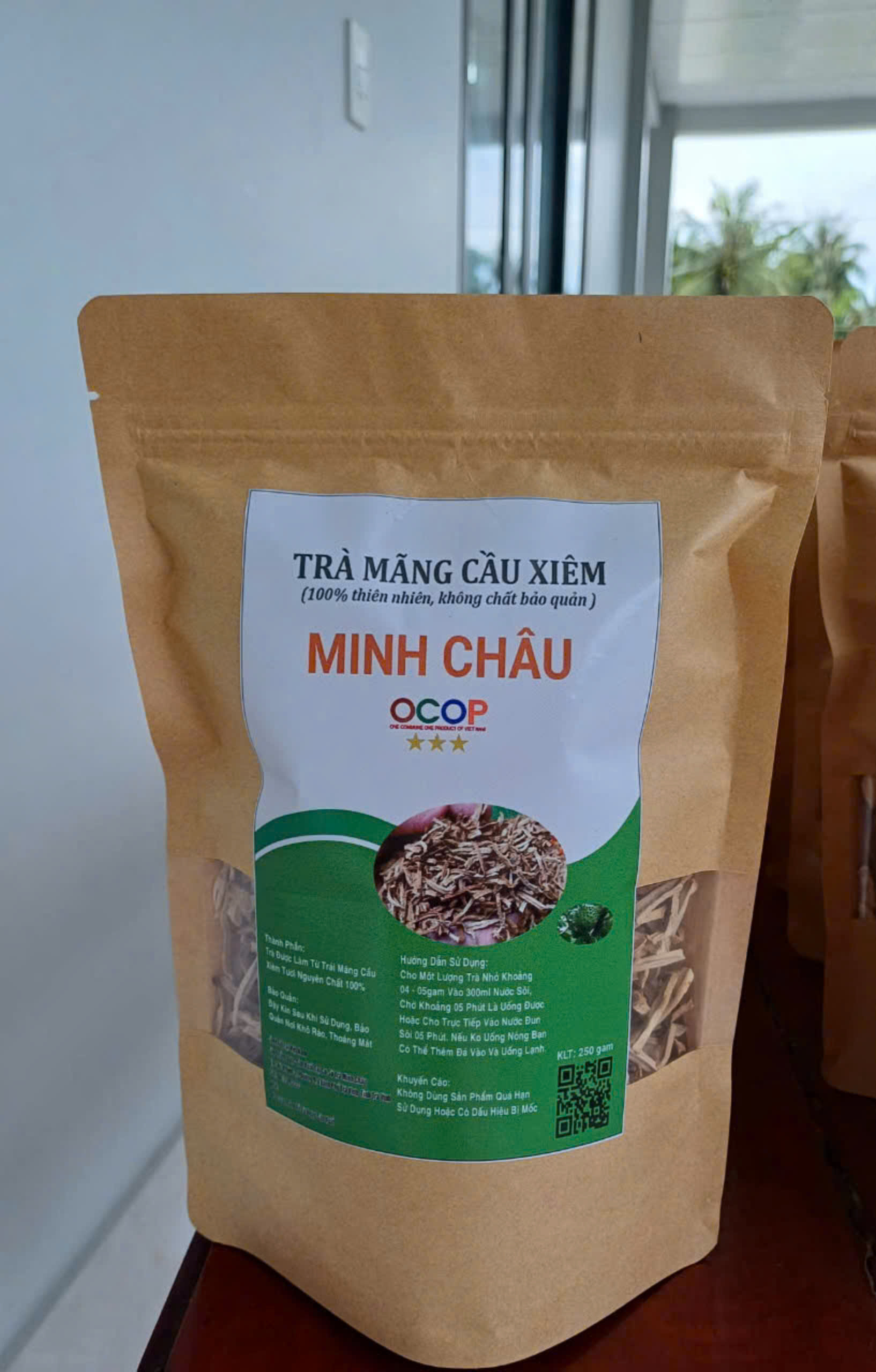 Trà mãng cầu xiêm Minh Châu là sản phẩm được chế biến hoàn toàn từ trái mãng cầu xiêm sản phẩm không chứa chất tạo màu, tạo mùi hay chất bảo quản nên rất an toàn cho người sử dụng