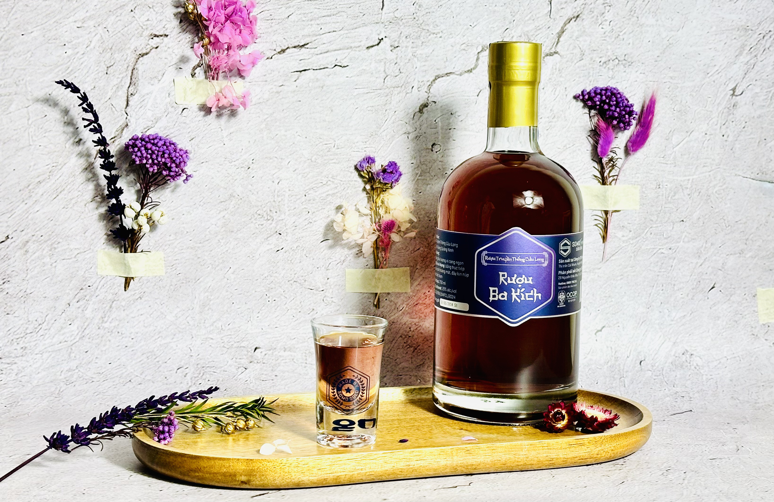 RƯỢU BA KÍCH - một sự kết hợp tinh tế giữa truyền thống và hiện đại Thành phần: Rượu truyền thống Cửu Long kết hợp Củ Ba Kích tươi Nồng độ: 29 Vol Rượu để càng lâu hương vị càng ngon