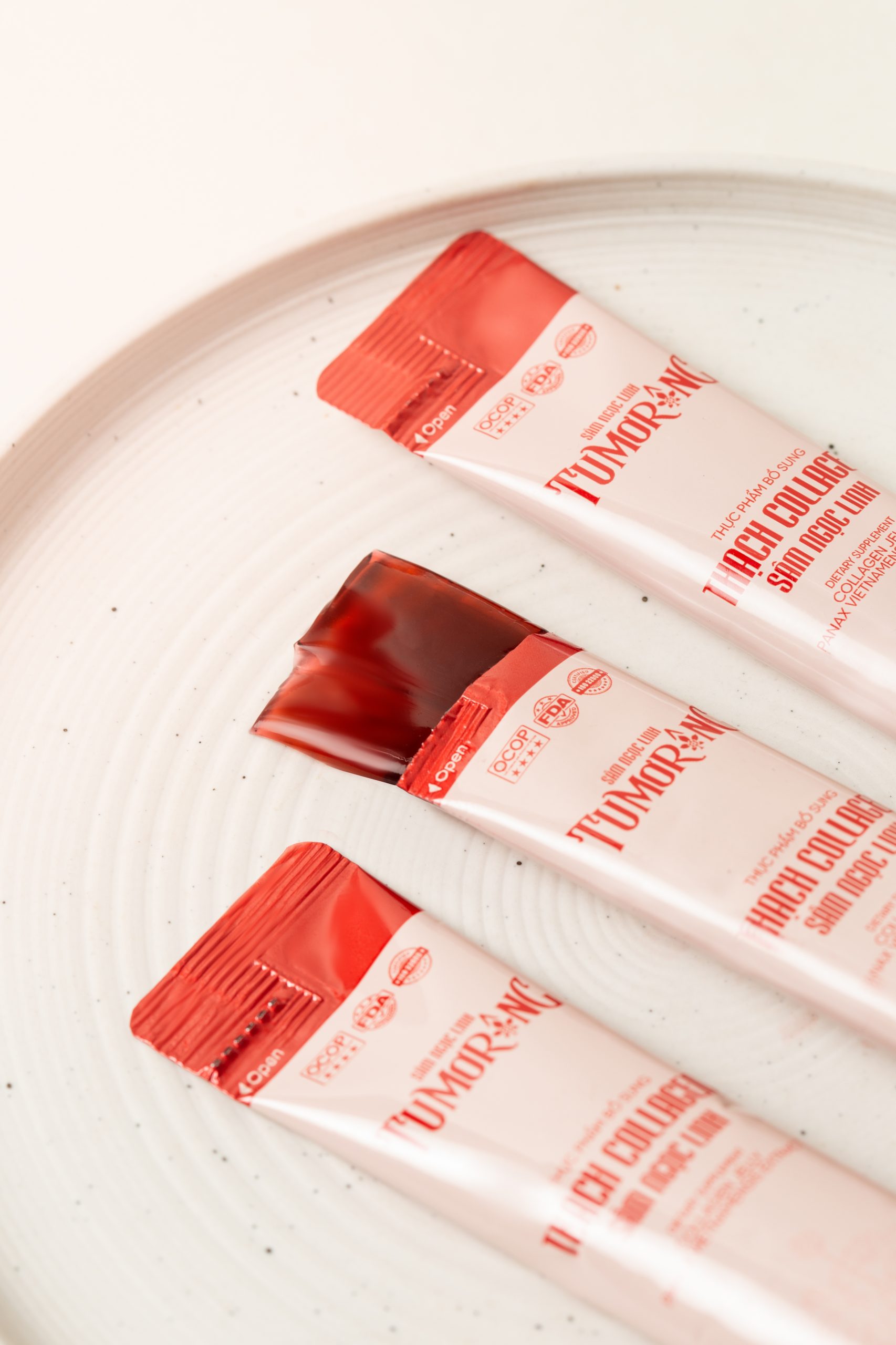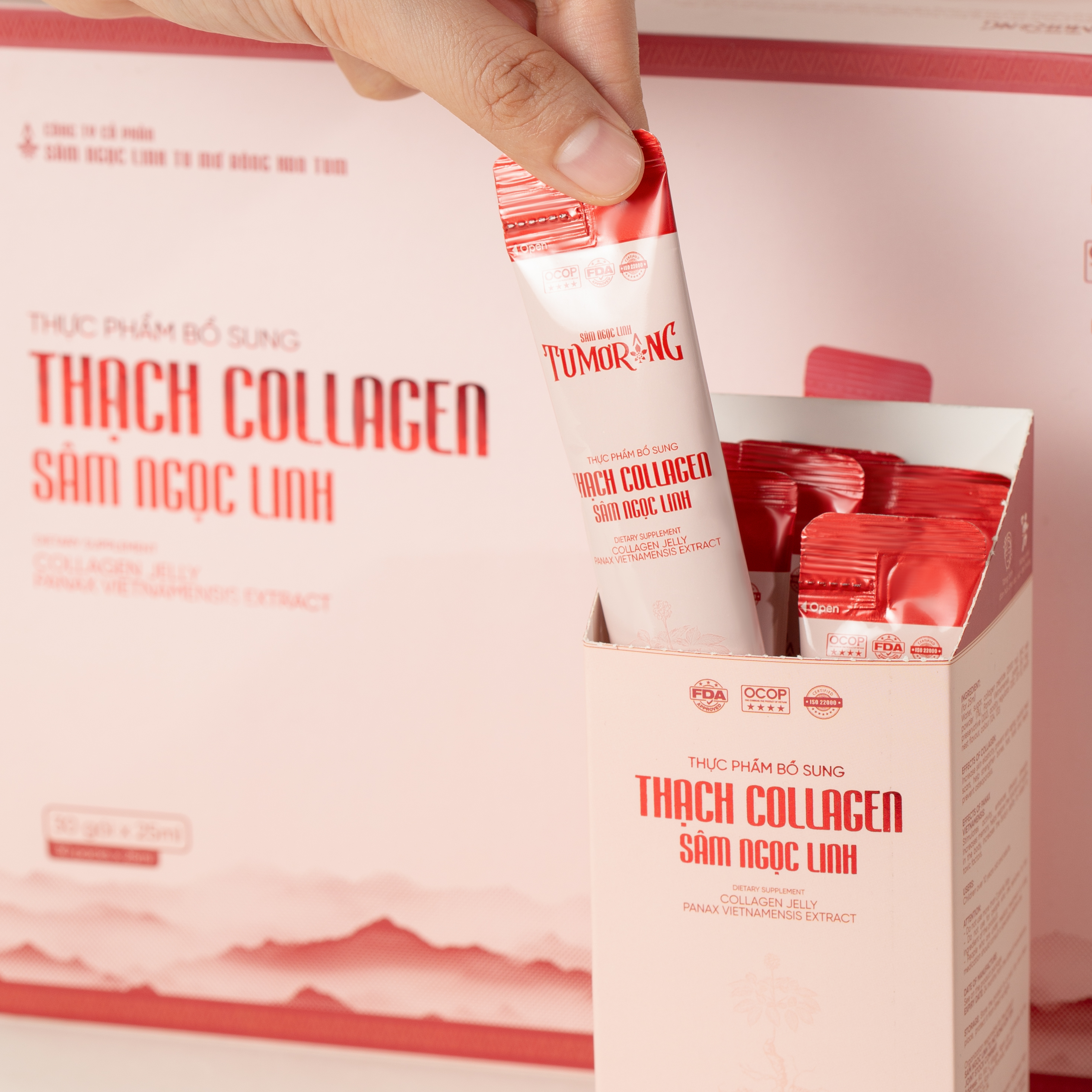 Trải nghiệm làn da trẻ trung, căng bóng với Thạch Collagen Sâm Ngọc Linh. Sản phẩm cao cấp này, với chiết xuất sâm Ngọc Linh quý hiếm và collagen peptide, giúp giảm rõ rệt nếp nhăn.