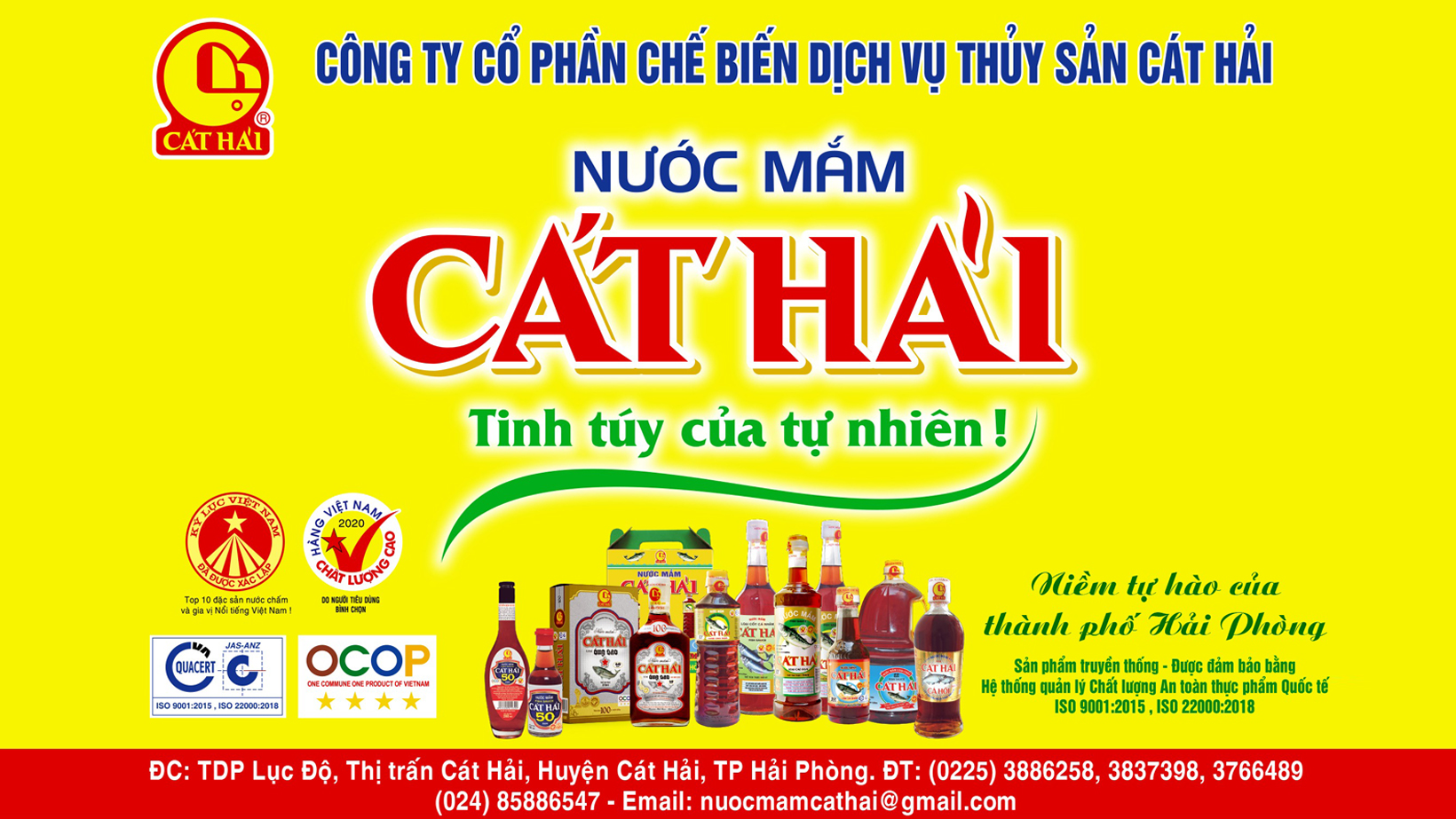 Nước mắm CÁT HẢI là sản phẩm sạch bởi những người làm ra nó luôn tuân thủ đạo đức nghề nghiệp, được áp dụng hệ thống ISO 9001:2015 và ISO 22000: 2018 không sử dụng bất cứ một loại hóa chất nào để tạo hương, tạo mùi hay tạo màu, tất cả đều có được từ cá và muối. Chính điều này cũng là yếu tố quan trọng để nước mắm CÁT HẢI an toàn, bảo quản trong thời gian dài mà không giảm chất lượng. Đặc biệt nước mắm CÁT HẢI của công ty cổ phần chế biến dịch vụ thủy sản Cát Hải đã được Cục Sở hữu trí tuệ - Bộ Khoa học công nghệ cấp giấy chứng nhận độc quyền nhãn hiệu hàng hóa “Nước mắm CÁT HẢI “ - Khẳng định về xuất xứ và chất lượng sản phẩm.