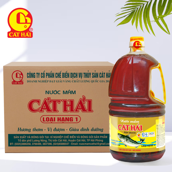 Nước mắm Cát Hải Hạng 1 là sản phẩm của Công ty cổ phần chế biến dịch vụ thuỷ sản Cát Hải. Là sản phẩm nước mắm truyền thống nổi tiếng, đạt tiêu chuẩn ISO 22000:2018, ISO 9001:2015.