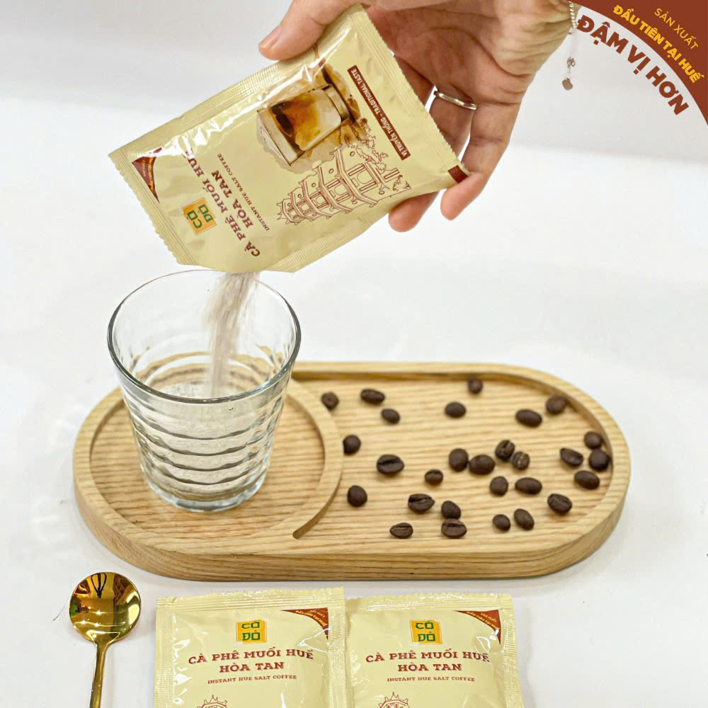 Sản phẩm phát triển dựa trên cà phê muối truyền thống Huế. Mẫu mã đẹp mắt, dạng gói tiết kiệm. Sự lựa chọn dành cho tín đồ yêu thích Cà phê muối Huế.
